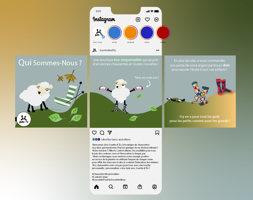 Réalisation d'un plan de communication fictif pour une marque de chaussette bretonne nommé Josette&Tic.